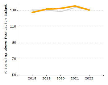 Percent actual net school spending above / under foundation budget
