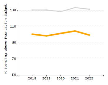 Percent actual net school spending above / under foundation budget