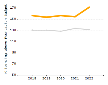 Percent actual net school spending above / under foundation budget