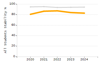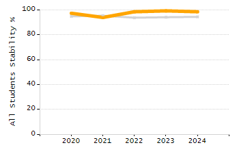 Percentage of students exceeding or meeting expectations