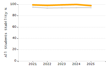 Percentage of students exceeding or meeting expectations