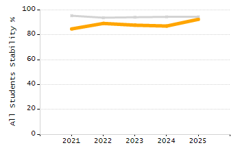 Percentage of students exceeding or meeting expectations