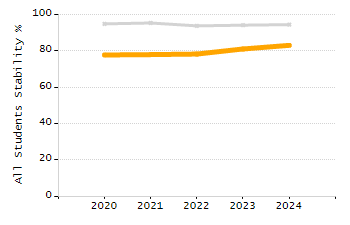 Percentage of students exceeding or meeting expectations