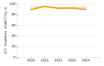 Percentage of students exceeding or meeting expectations