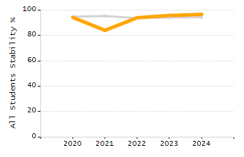 Percentage of students exceeding or meeting expectations
