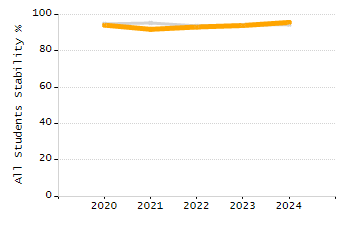 Percentage of students exceeding or meeting expectations