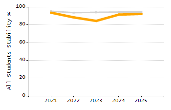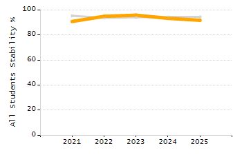 Percentage of students exceeding or meeting expectations