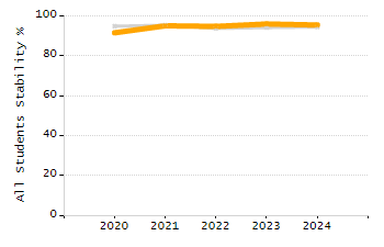 Percentage of students exceeding or meeting expectations