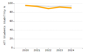 Percentage of students exceeding or meeting expectations
