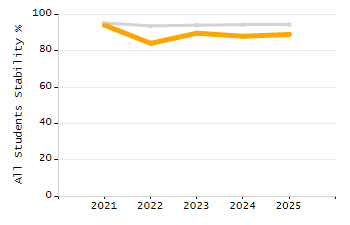 Percentage of students exceeding or meeting expectations