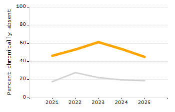 Percentage of students exceeding or meeting expectations