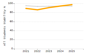 Percentage of students exceeding or meeting expectations