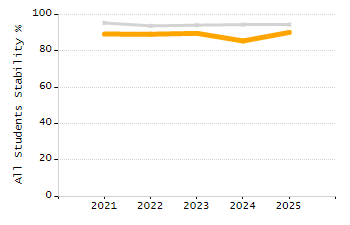 Percentage of students exceeding or meeting expectations