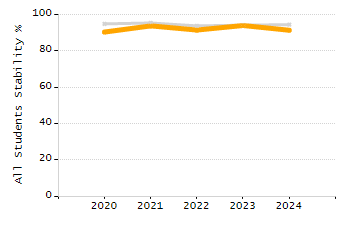 Percentage of students exceeding or meeting expectations