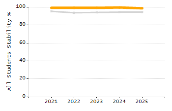 Percentage of students exceeding or meeting expectations