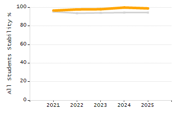 Percentage of students exceeding or meeting expectations