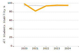 Percentage of students exceeding or meeting expectations