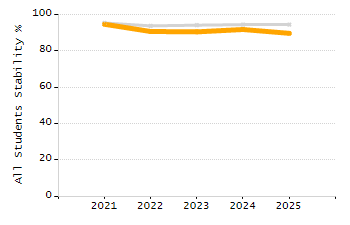 Percentage of students exceeding or meeting expectations