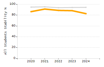 Percentage of students exceeding or meeting expectations