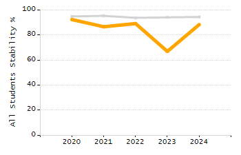 Percentage of students exceeding or meeting expectations