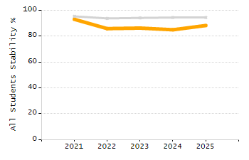 Percentage of students exceeding or meeting expectations