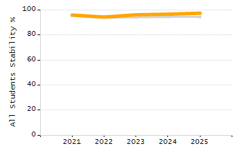 Percentage of students exceeding or meeting expectations