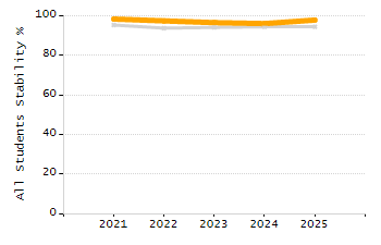 Percentage of students exceeding or meeting expectations
