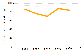 Percentage of students exceeding or meeting expectations
