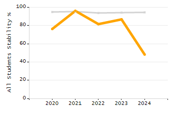 Percentage of students exceeding or meeting expectations