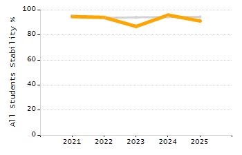 Percentage of students exceeding or meeting expectations