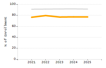Percentage of students exceeding or meeting expectations