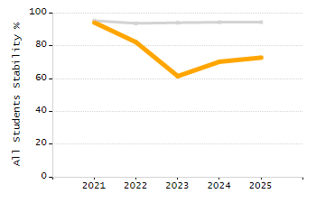 Percentage of students exceeding or meeting expectations