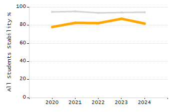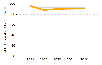 Percentage of students exceeding or meeting expectations
