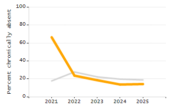 Percentage of students exceeding or meeting expectations