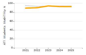 Percentage of students exceeding or meeting expectations
