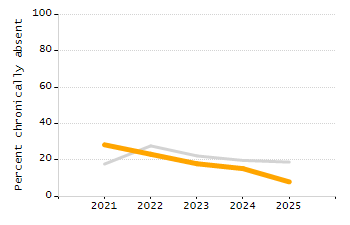 Percentage of students exceeding or meeting expectations