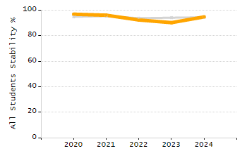 Percentage of students exceeding or meeting expectations
