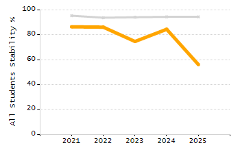 Percentage of students exceeding or meeting expectations