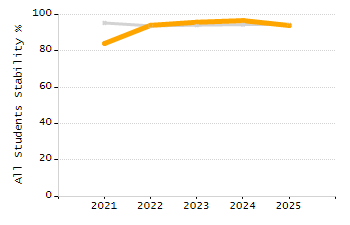 Percentage of students exceeding or meeting expectations