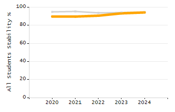 Percentage of students exceeding or meeting expectations