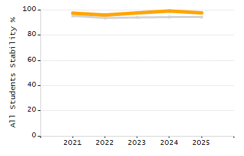 Percentage of students exceeding or meeting expectations