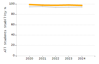 Percentage of students exceeding or meeting expectations