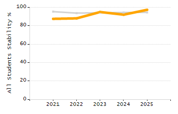 Percentage of students exceeding or meeting expectations
