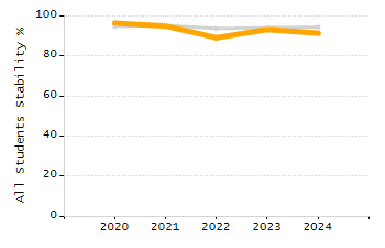 Percentage of students exceeding or meeting expectations