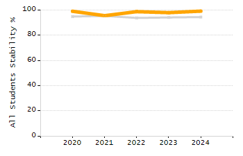 Percentage of students exceeding or meeting expectations