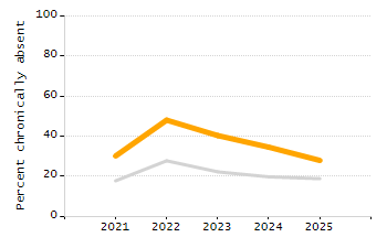Chronically absent rate (% of students absent 10% or more each year)