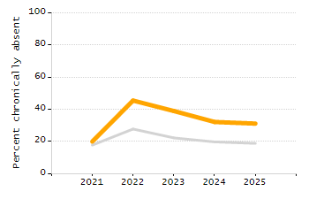 Chronically absent rate (% of students absent 10% or more each year)