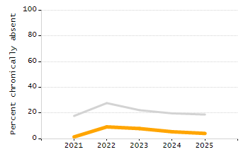 Chronically absent rate (% of students absent 10% or more each year)